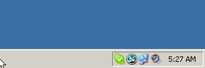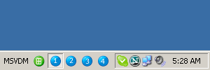 You'll see five extra buttons beside the system tray. The blue buttons switch between desktops . . .