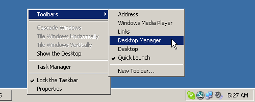 . . . but there is an extra "Desktop Manager" option in the right-click Toolbars properties. Click to enable it.