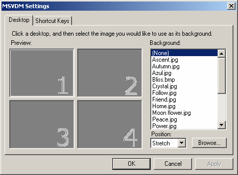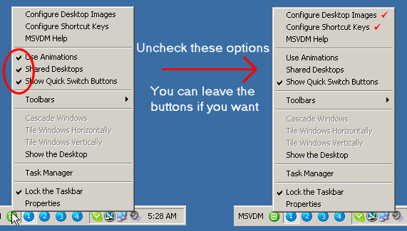 Fact is, you don't even need the buttons because if you press the green (MSVDM) button, you can "see" the desktops and click the one you want to jump to.