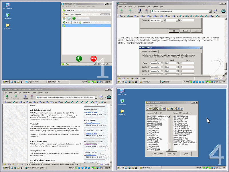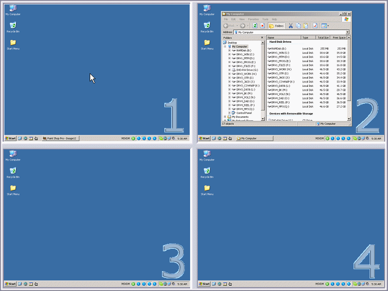 Note. There is four desktops. Everything else remains the same. Eg. There is only one windows clipboard... which means you can copy something from one desktop and paste it into another without problem or hassle.